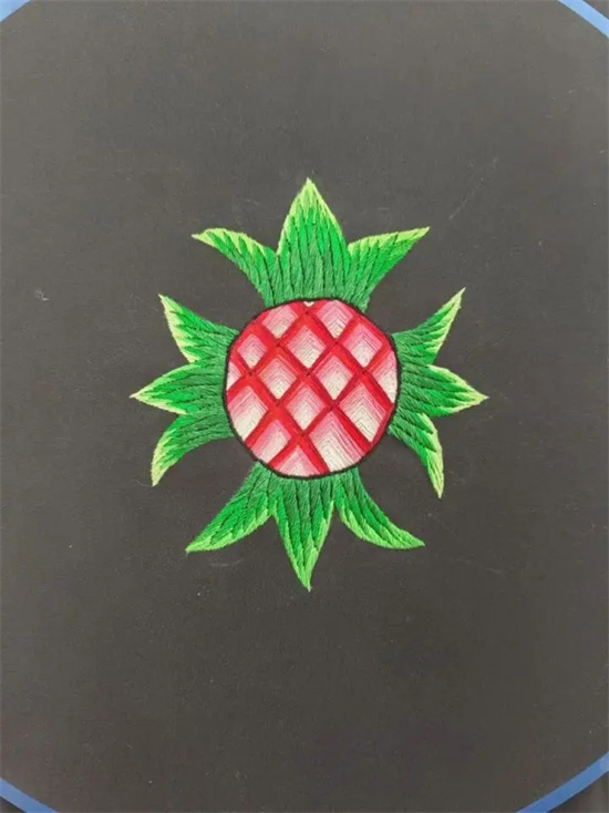田茂媛的现场评展作品是《龙龟抢宝》,手工刺绣作品是《鱼龙》。石维仙的现场展评作品是《蝶舞红锦》,手工刺绣作品是《苗绣石榴韵》。田应芝的现场展评作品是《滚龙》,手工刺绣作品是《和谐之果》。