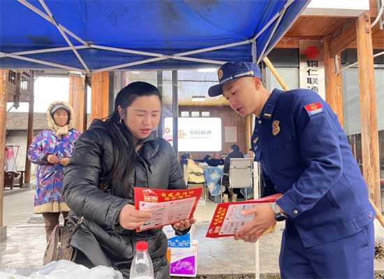 近日,江口县梵净山消防救援站依托辖区“赶集”人员密集特点,开展“志愿暖冬·防火先行”消防宣传服务活动。