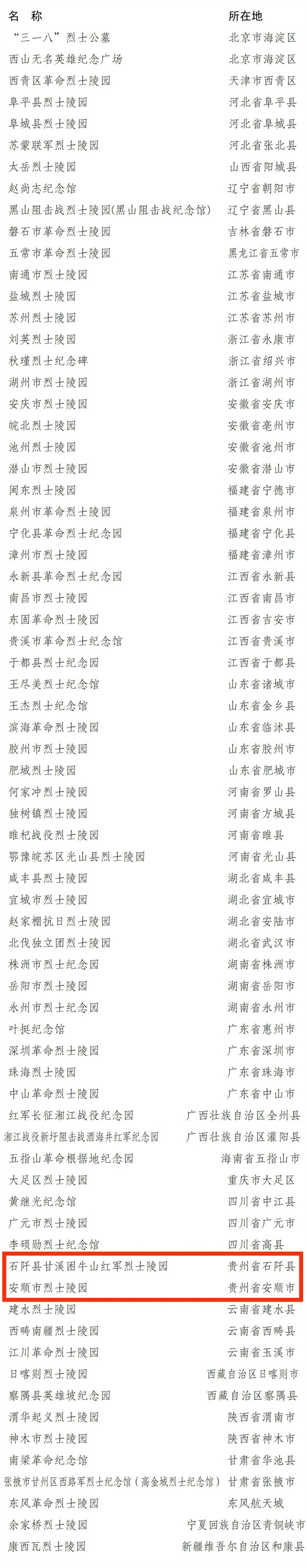 近日,经国务院批准,贵州省石阡县甘溪困牛山红军烈士陵园和安顺市烈士陵园两处纪念设施被列为第七批国家级烈士纪念设施。