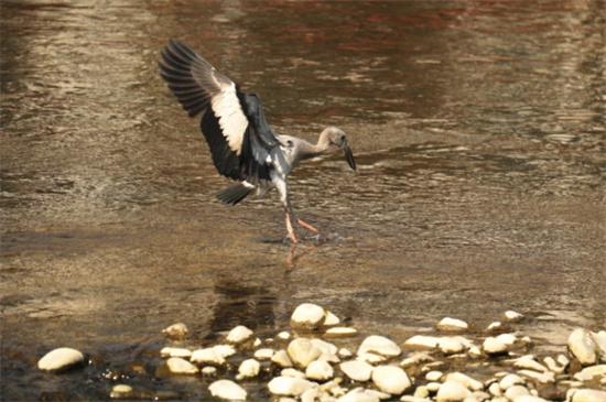 “我看到从风雨桥上掠过,体型大,以为是来了鹰。”张羽辉说,当鸟盘旋几圈飞到印江中学旁的河段后,就急速俯冲到水边开始不停觅食。