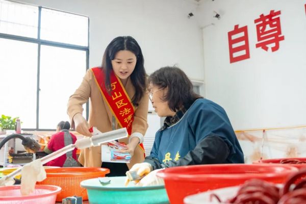 “这款朱砂平安扣,寓意吉祥,手工雕刻工艺精湛……”在朱砂产业园电商运营中心,新时代文明实践站志愿者正在分享电商运营的实战经验,通过培训帮助企业员工和电商从业者快速掌握专业、实用的直播销售技巧。截至目前,园区新时代文明实践站已开展10期朱砂电商培训和38场文明实践活动,服务职工超1000人次,志愿者们成为文明实践的“领头雁”,带动越来越多的人参与到文明实践中来,让志愿精神在园区蔚然成风。